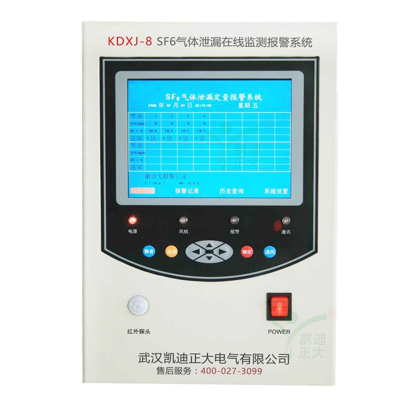 KDXJ-8 SF6氣體泄漏報警系統采用聲速原理,能夠實時、定量測量SF6濃度,哪怕在SF6濃度在50ppm(v/v)也能有效地檢測。不僅可以達到保障人身安全的目的,而且還能確保設備正常運行;原裝進口高穩定的超聲波傳感器和氧傳感器,可以為現場工作人員提供更多一層可靠保護。可廣泛應用于各種電壓等級的SF6開閉室、SF6開關室、 組合電器室(GIS室)、SF6主變室等。