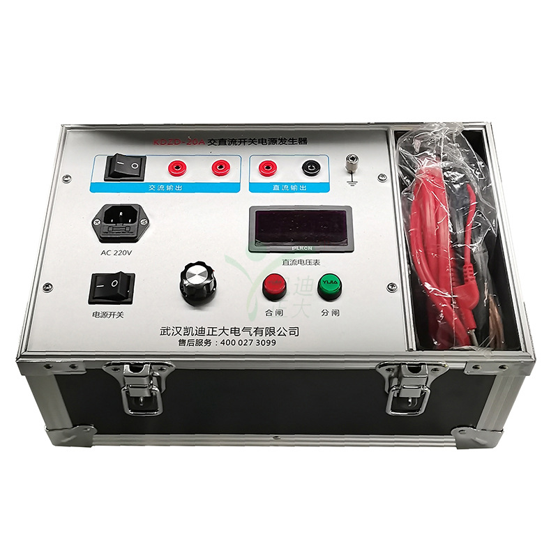KDZD-20A 交直流開關電源發生器亦稱高壓開關檢測操作電源,是為對高壓斷路器及其操作機構進行檢測維修而設計的專用電源,具有電壓可調、操作簡單、體積小、攜帶方便等優點,是高壓開關檢修不可缺少的檢測工具。