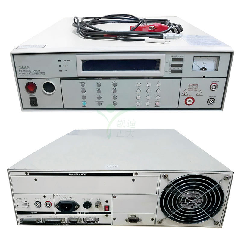 KD7440 系列程控耐壓測試儀均采用高速 MCU 和大規模數字電路設計的高性能的安規測試儀,其輸出電壓的大小、輸出電壓的上升、下降、輸出電壓的頻率由MCU 控 制,能實時 顯示擊穿電流值和電壓值,并具有軟體校準功能,配備 PLC 接口、RS232C、RS485、USB device、 USB Host接口、可方便與計算機或 PLC 組成綜合測試系統。 能夠快速、準確地對家用電器、 儀器儀表、照明電器、電動電熱器具、計算機、信息類整機進行安規綜合測量。