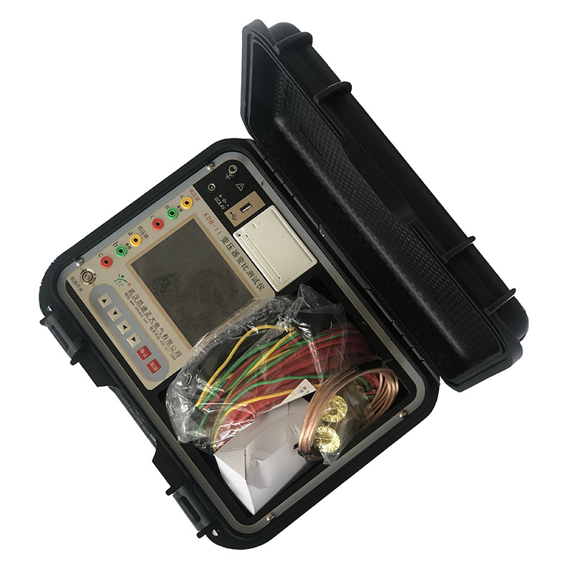 4、變比測試準確度:變比范圍 1~999.9 :0.2 級;變比范圍 1000~10000 :0.5 級