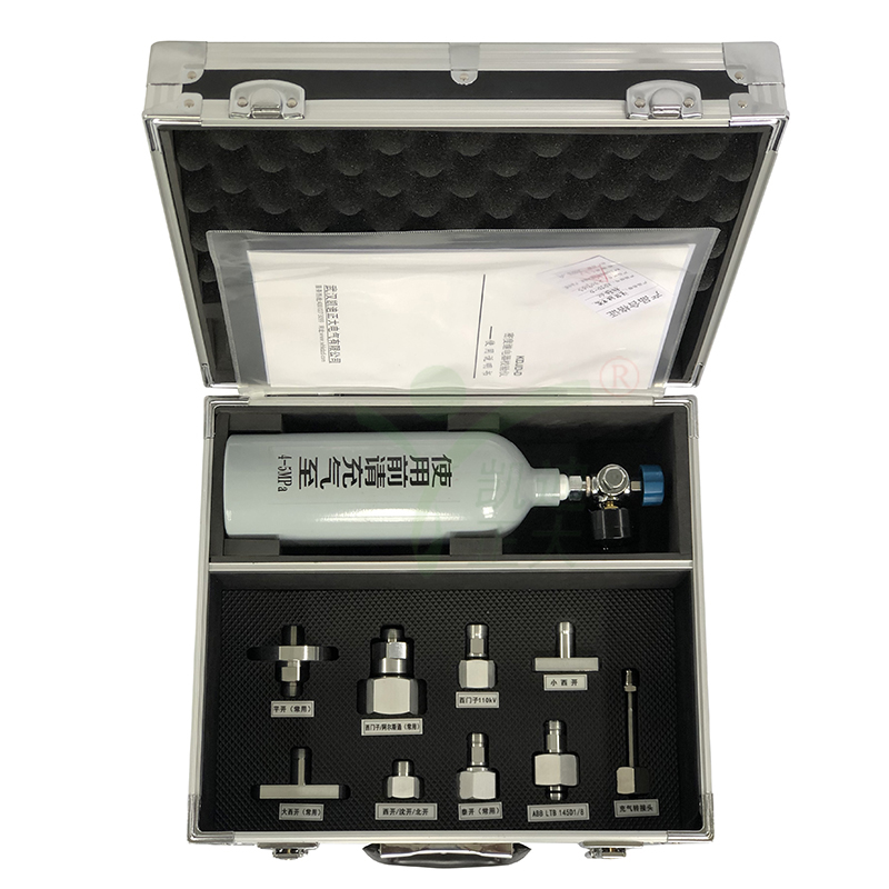 5.配套過渡接頭全:本產品為便攜式儀器,配備多種型號過渡接頭,大多數型號開關密度繼電器不用拆卸即可進行現場校驗,是SF6密度繼電器校驗的常用儀器。