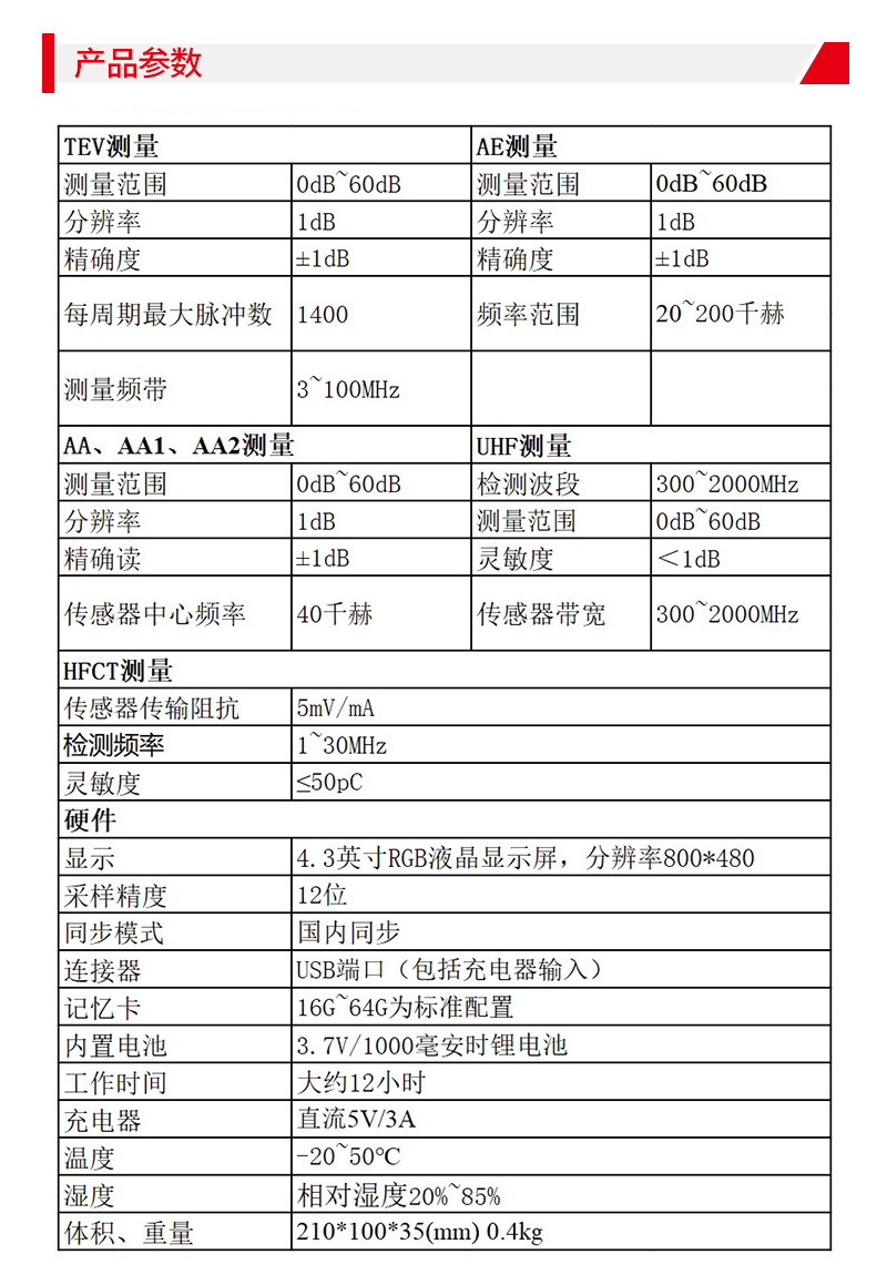 4.內置超聲波傳感器和瞬態接地電壓(以下簡稱TEV)傳感器,可連接變壓器、GIS、架空線路、電纜等專用傳感器。