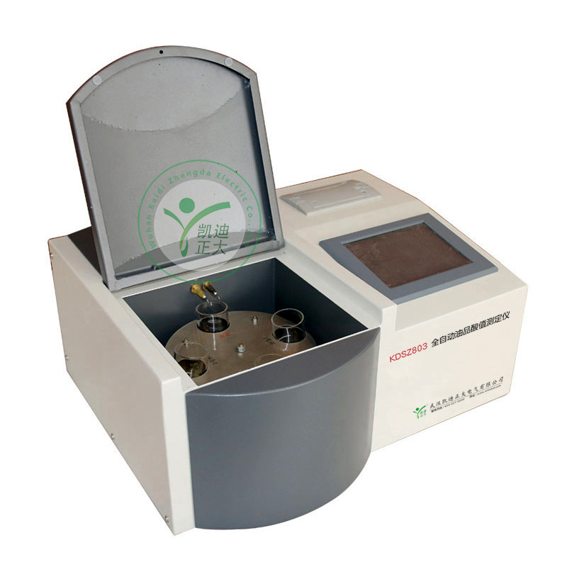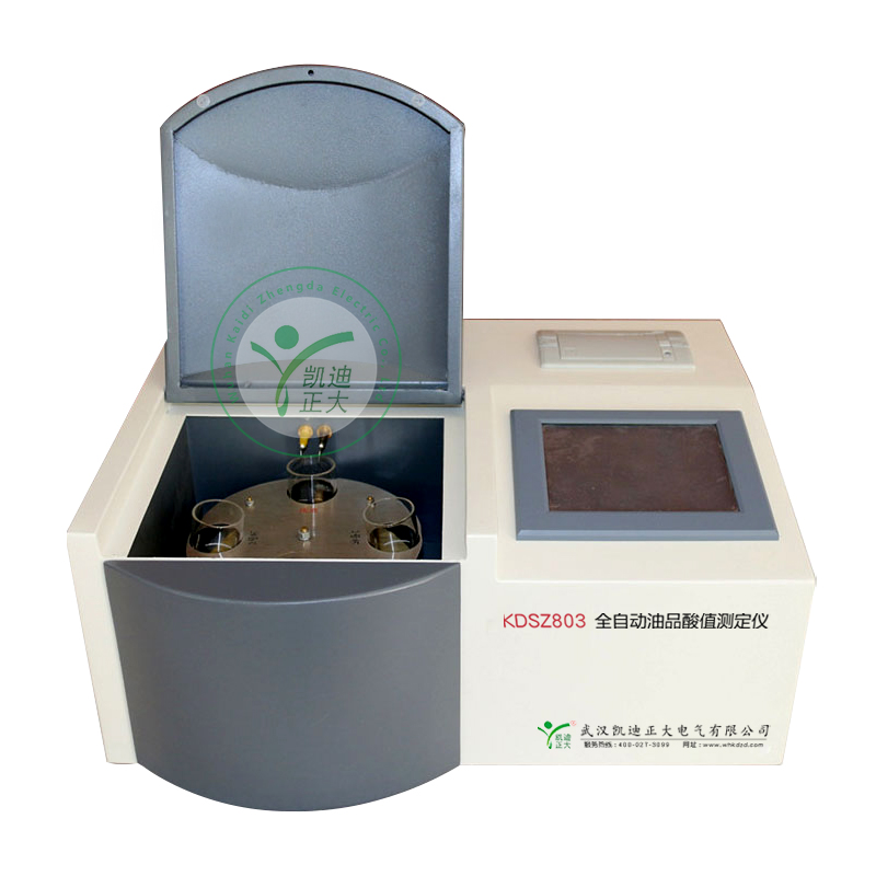 KDSZ-803D全自動(dòng)油品酸值測(cè)定儀采用中和法原理,于常溫狀態(tài)下,微機(jī)控制自動(dòng)完成加液、攪拌、滴定及終點(diǎn)判斷。采用觸摸式液晶屏選擇所有工作參數(shù),人機(jī)對(duì)話界面簡(jiǎn)潔友好,操作方便,油樣平均分析周期為2分鐘左右。可分別顯示多至35組的測(cè)定結(jié)果,并可打印輸出多項(xiàng)與測(cè)定相關(guān)的參數(shù)。
