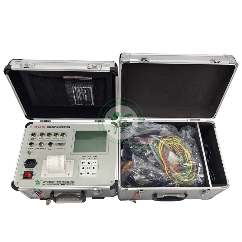 3.機內集成式操作電源,無須現場二次電源,現場使用方便快捷??商峁〥C20~265V可調電源,電流20A。整定分、合閘線圈的動作電壓值,并可做斷路器的低電壓動作試驗。