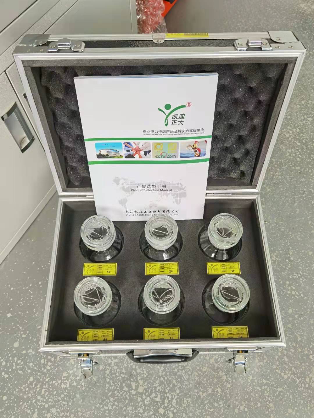 1、電力變壓器油樣外觀、顏色:檢查運行油的外觀,新變壓器油一般是無色或淡黃色,運行中顏色會逐漸加深,可以發現油中不溶性油泥、纖維和臟物存在。在常規試驗中,應有此項目的記載。使用KDZD-GKP變壓器油廣口瓶取樣箱500mL的取樣尤為重要。