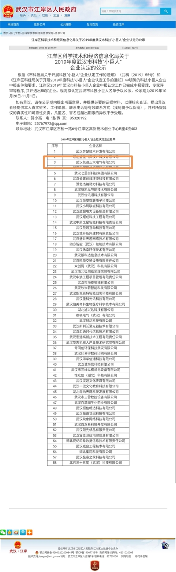 根據《市科技局關于開展科技“小巨人”企業認定工作的通知》(武科〔2019〕55號)和《江岸區科經局關于開展2019年度科技“小巨人”企業認定工作的通知》中明確的科技小巨人企業申報條件和要求,江岸區2019年武漢市科技小巨人企業申報認定工作已完成申報受理、專家評審等程序, 共評選出58家企業。現將擬認定武漢市科技小巨人名單予以公示,公示期為2019年10月28日-11月1日。