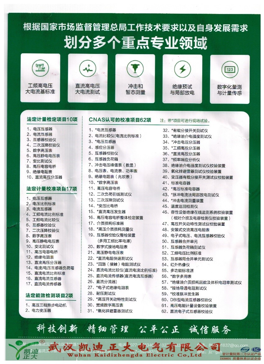 國家高電壓計量站CNAS認可的校準項目