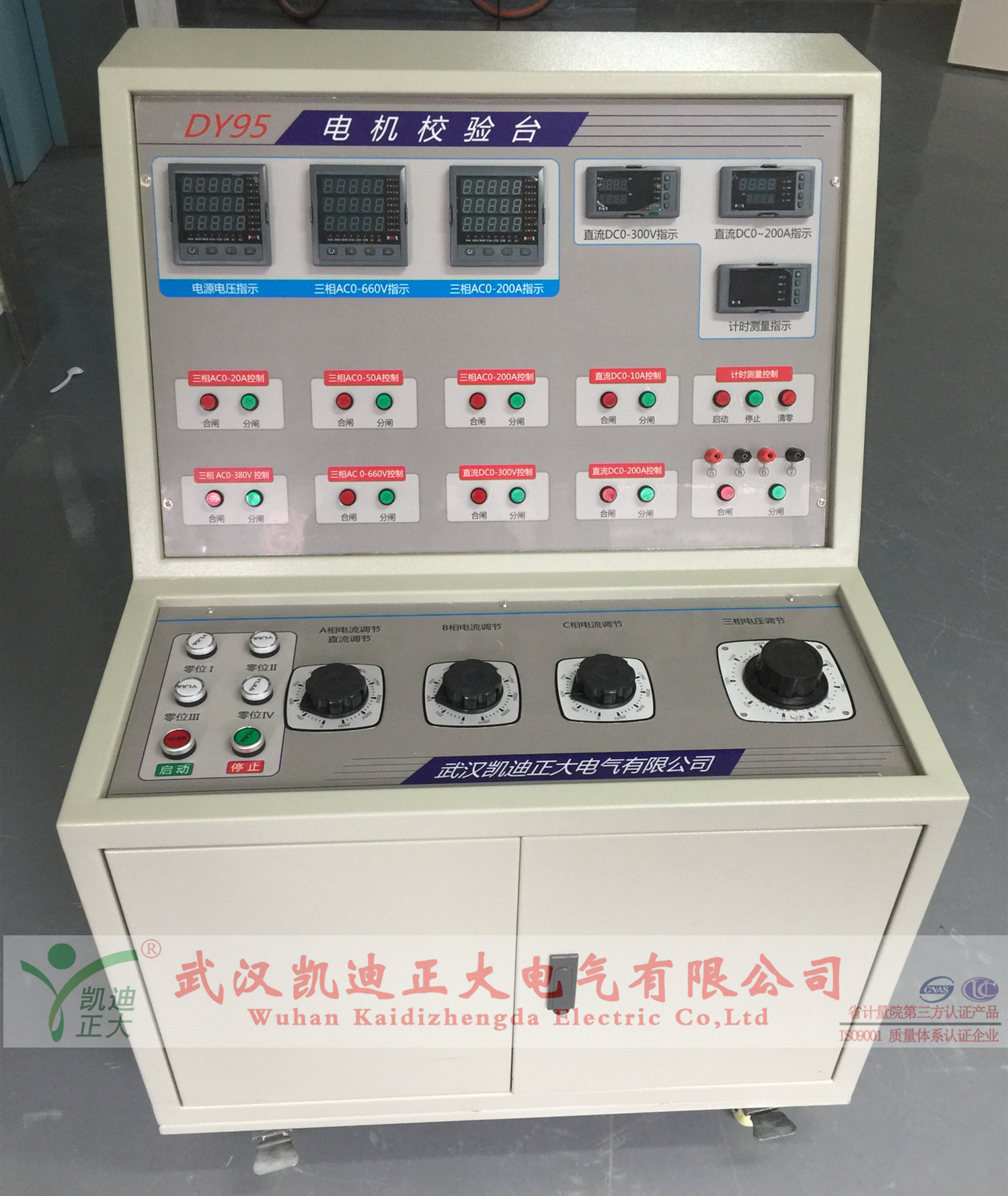 1、DY95電機(jī)校驗(yàn)臺(tái)用于高低壓開(kāi)關(guān)柜生產(chǎn)廠家對(duì)所生產(chǎn)的高低壓開(kāi)關(guān)柜進(jìn)行出廠前的各項(xiàng)通電試驗(yàn)。它能提供各種交、直流電源,便于對(duì)開(kāi)關(guān)柜的檢測(cè),提高工作效率。