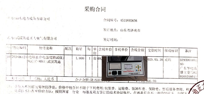 國網(wǎng)山東電力公司采購我司KDJJC-80KV絕緣油介電強(qiáng)度測試儀
