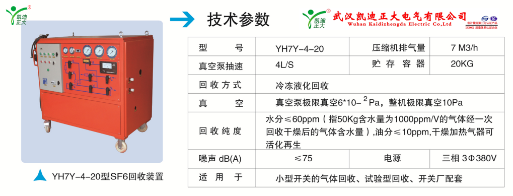 35kV及以下開關成套設備廠建議用KDQH-7Y-4-20型,壓縮機排量在7M3/h,抽氣速率4L/S采用冷凍液化回收。
