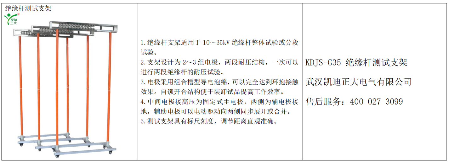 絕緣桿支架適用于10~35kV絕緣桿整體試驗或分段試驗。支架設(shè)計為2~3組電極,兩段耐壓結(jié)構(gòu),一次可以進(jìn)行兩段絕緣桿的耐壓試驗。電極采用組合槽型導(dǎo)電泡綿,可以幾乎達(dá)到環(huán)抱接觸效果。自鎖開合結(jié)構(gòu)便于裝卸試品提高工作效率。中間電極接高壓為固定式主電極,兩側(cè)為輔電極接地,輔助電極可以電動驅(qū)動向兩側(cè)同步展開或合并。測試支架具有標(biāo)尺刻度,調(diào)節(jié)距離直觀準(zhǔn)確。