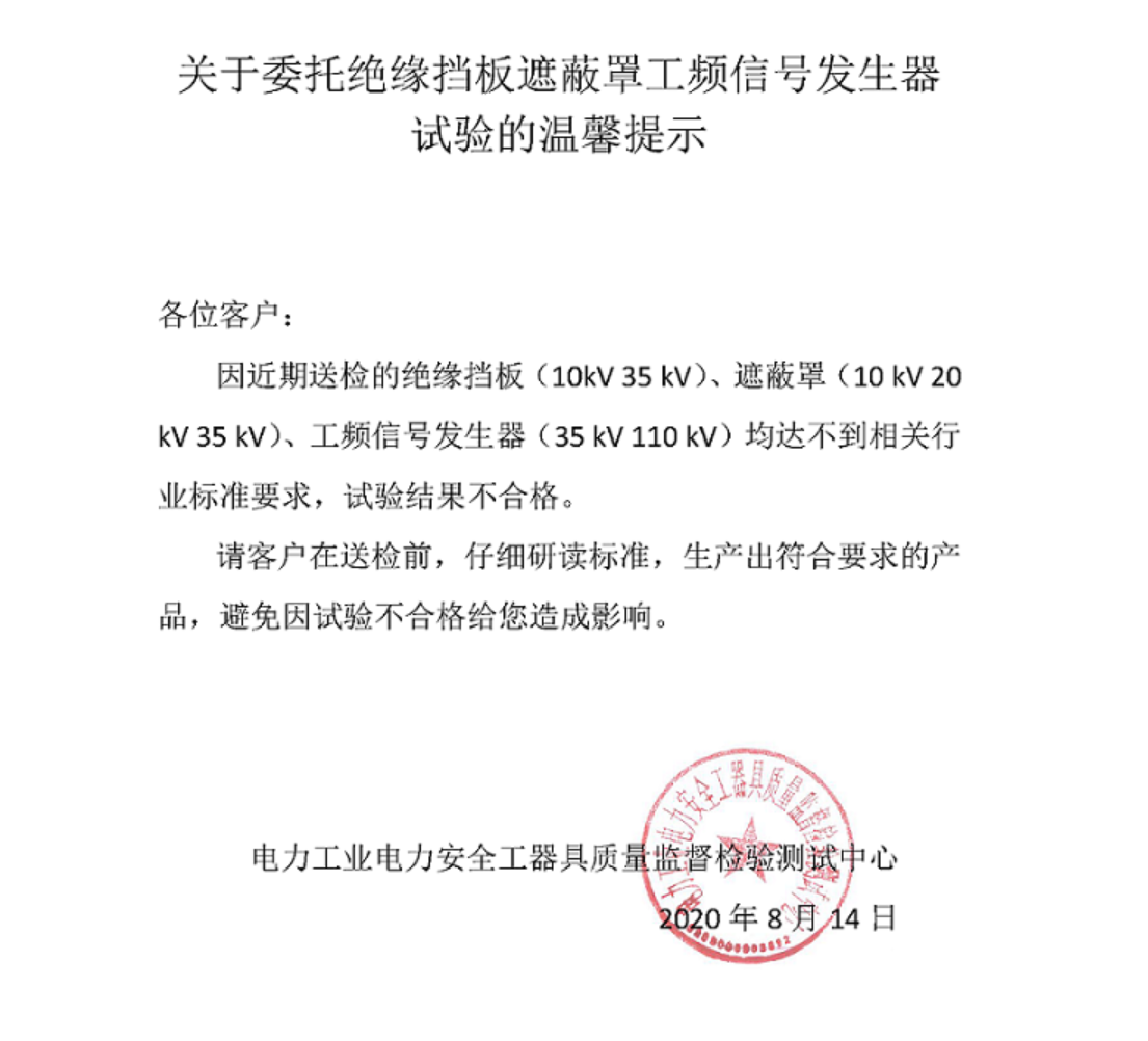 關于委托絕緣擋板、遮蔽罩、工頻信號發生器試驗的溫馨提示