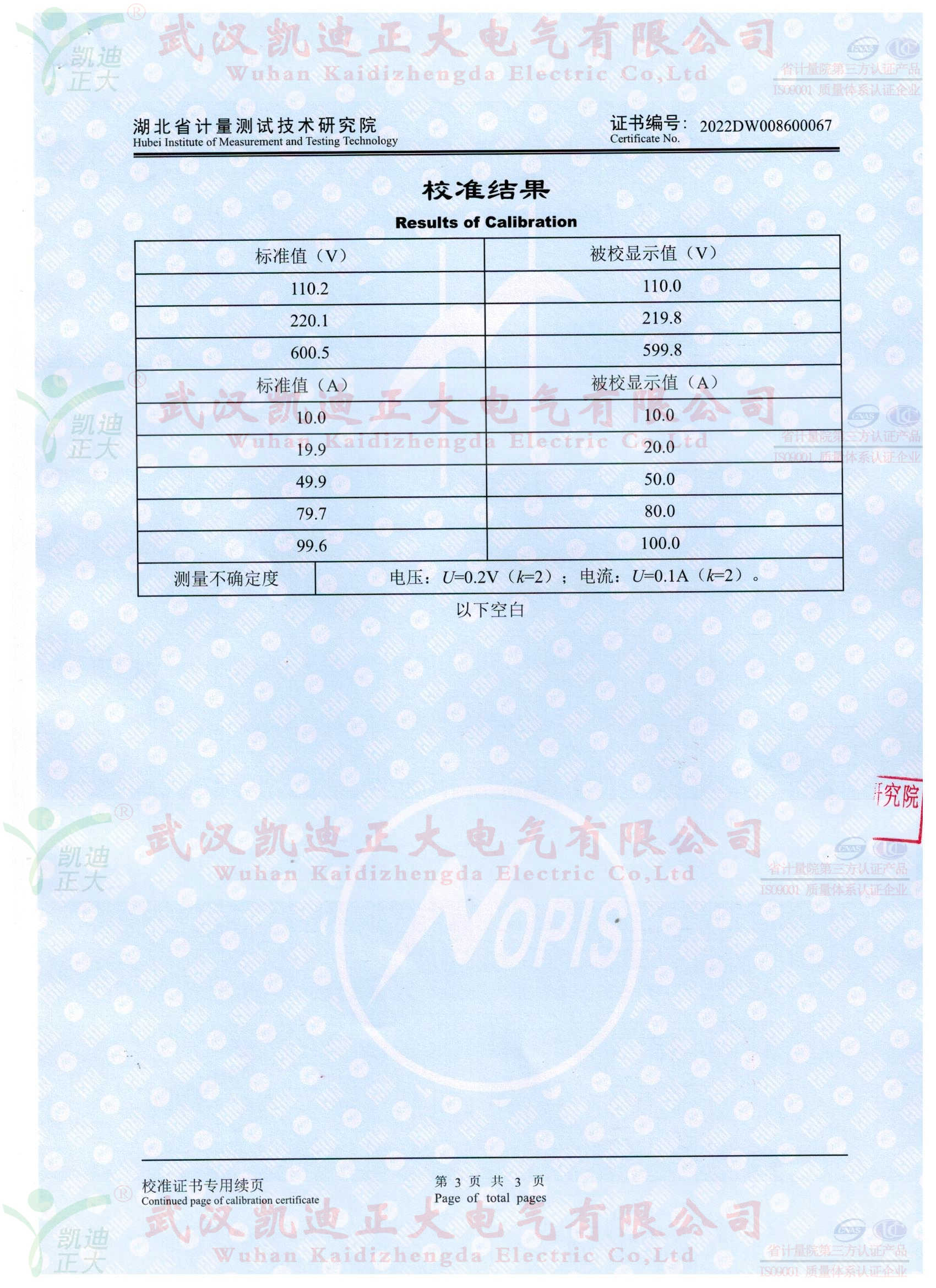 生產KDZD886完成后,送往省計量院。在校準證書顯示:采用國家高電壓計量站(計)字第2021015336號溯源機構的高精度電流傳感器及數字多用表檢定電壓示值誤差U=0.2V;電流值U=0.1A的結果值,符合國家相關標準,滿足測量不確定度。