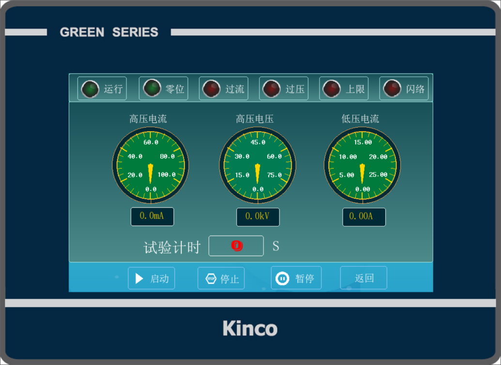 試驗狀態:高壓擊穿設備安全說明,軟件里實時顯示當前試驗狀態,如:試驗門是否關閉,升壓指示、歸零復位指示等。