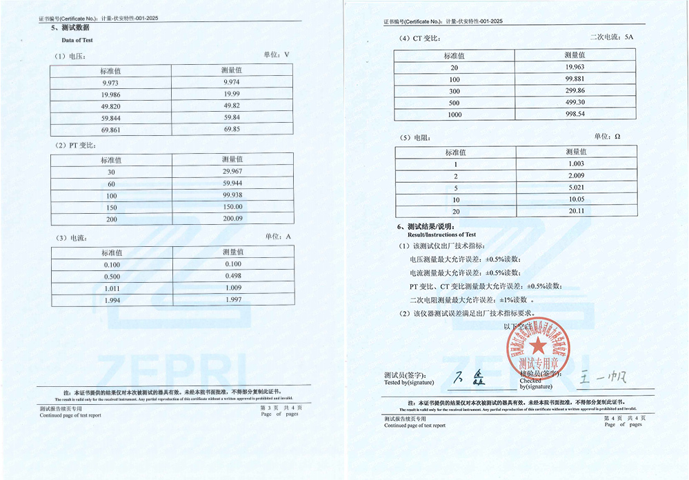 浙江某工程有限公司采購凱迪正大電氣生產(chǎn)的KDHG-518C變頻互感器特性測試儀,在國網(wǎng)浙江省電力有限公司電力科學(xué)研究院的嚴(yán)格校準(zhǔn)測試中表現(xiàn)穩(wěn)定和可靠,順利通過各項(xiàng)性能指標(biāo)的檢測,并成功獲得校準(zhǔn)測試報(bào)告。彰顯了KDHG-518C變頻互感器特性測試儀的性能和質(zhì)量,驗(yàn)證了市場客戶在電力設(shè)備采購方面的專業(yè)眼光和嚴(yán)苛標(biāo)準(zhǔn)。