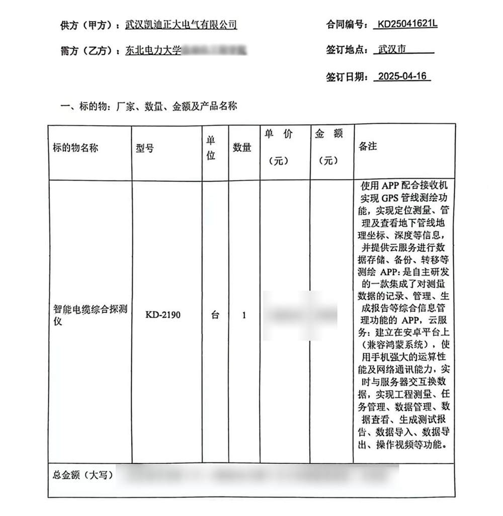 近日,東北電力大學(xué)經(jīng)過嚴(yán)格篩選與評(píng)估,最終選擇了武漢凱迪正大電氣的KD-2190智能電纜綜合探測(cè)儀。此次采購(gòu)不僅彰顯了東北電力大學(xué)對(duì)武漢凱迪正大電氣品牌與技術(shù)的信賴,更標(biāo)志著KD-2190智能電纜綜合探測(cè)儀可靠的性能和質(zhì)量。