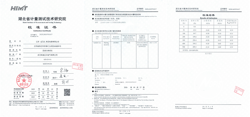 為確保測量數(shù)據(jù)的準(zhǔn)確性和可靠性,客戶要求將采購的KD-2016A壓緊力測試儀送至湖北省計(jì)量測試技術(shù)研究院進(jìn)行校準(zhǔn)。校準(zhǔn)證書編號(hào)為2025LX029701017,由該院權(quán)威出具,確保了設(shè)備的量值溯源至國家計(jì)量基準(zhǔn)和國際單位制(SI)。