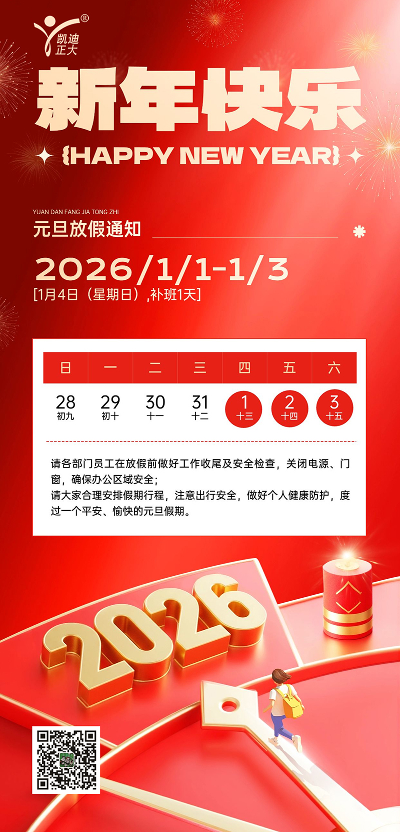 凱迪正大2026年元旦放假安排及注意事項