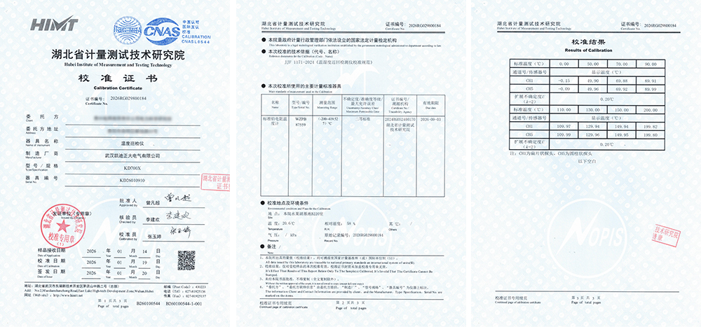 三份校準證書均出自湖北省計量測試技術研究院。湖北省計量測試技術研究院是政府計量行政管理部門依法設立的國家法定計量檢定機構。其出具的校準結果具備法律意義上的公信力與權威性。所出具的量值(校準結果),均可溯源至國家計量基準和(或)國際單位制(SI)。